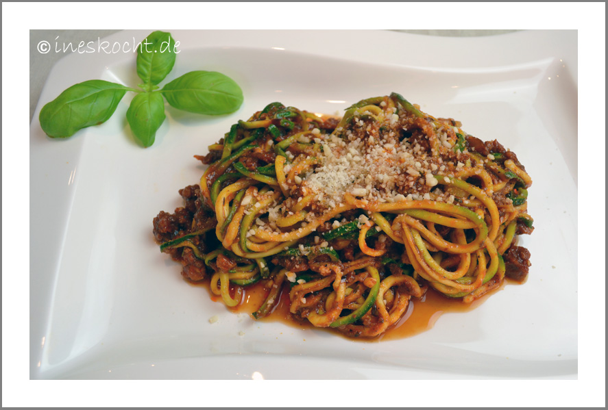 zurück zur Galerie 17. September 2013 Zucchini-Spaghetti-Bolognese Nächstes Bild » Zucchini-Spaghetti Bolognese mit Mandel-Parmesan